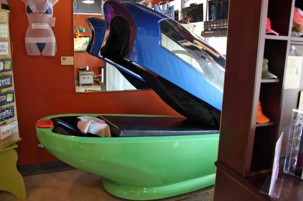 Not all egg-type spa capsules are personal saunas! You may also see a water-massage-style spa capsule like the Spa Capsule model pictured here. With this type of massage bed, the client lays spa capsule water massageon their stomach and the water jets down from the top with heavy pressure. This type of water massage spa capsule does not offer the other collateral services, like red light therapy, aroma therapy, or exfoliation like the Hydration Station will give you but it does offer a water massage option for a tight space.